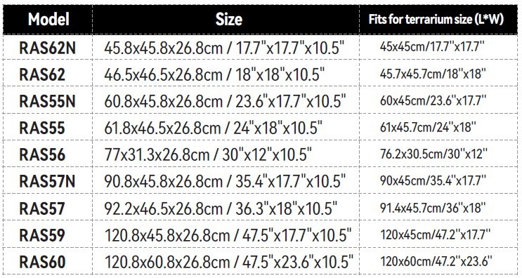 For use with NRK / RHK / RK / PHK / PRK Series ReptiZoo Enclosures